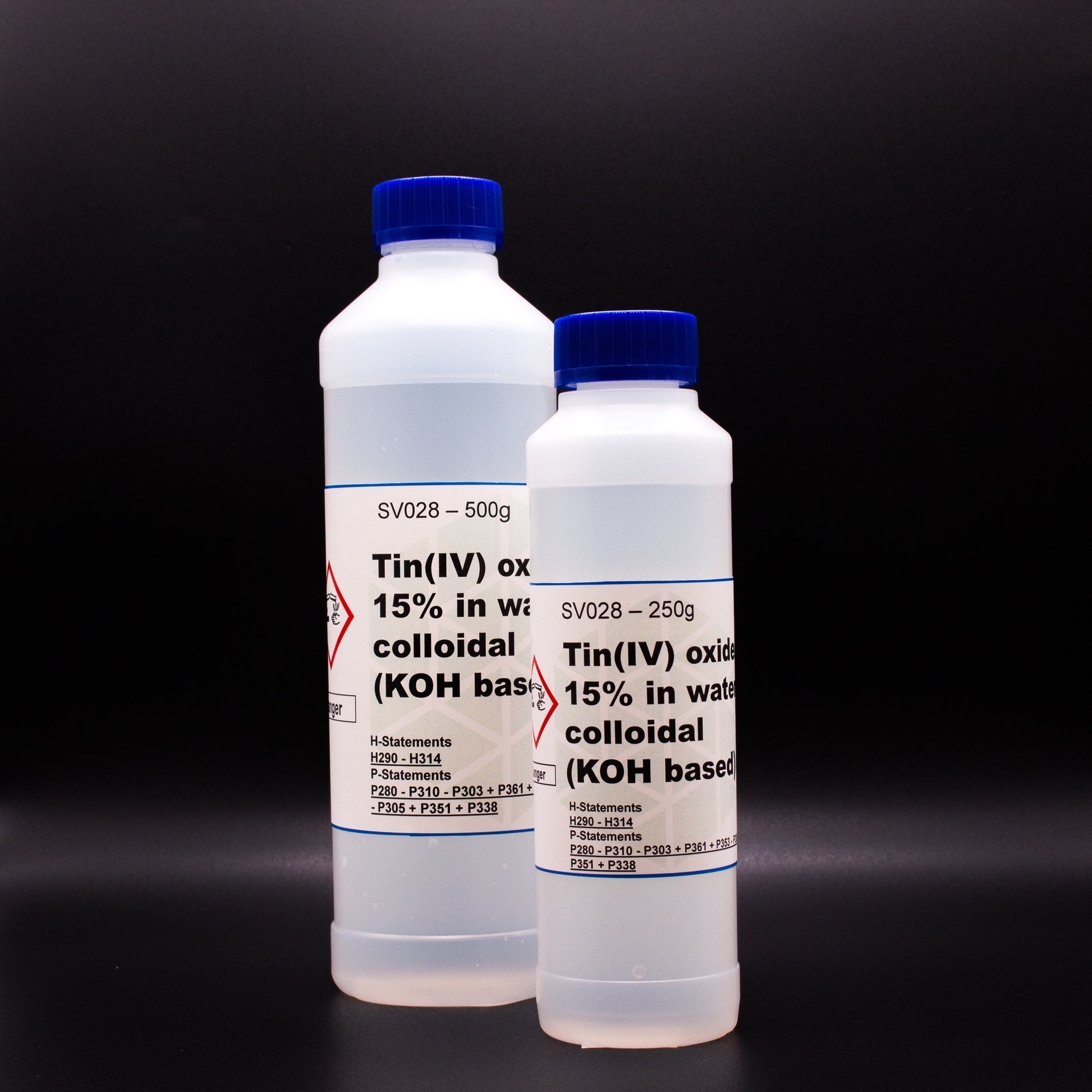 Solaveni provides SnO2 in a standard aqueous concentration of 15%. Custom concentrations can be arranged upon request. For inquiries regarding concentrations not listed or for bulk quantities exceeding those specified in our online store, please reach out to us for additional information and tailored solutions.